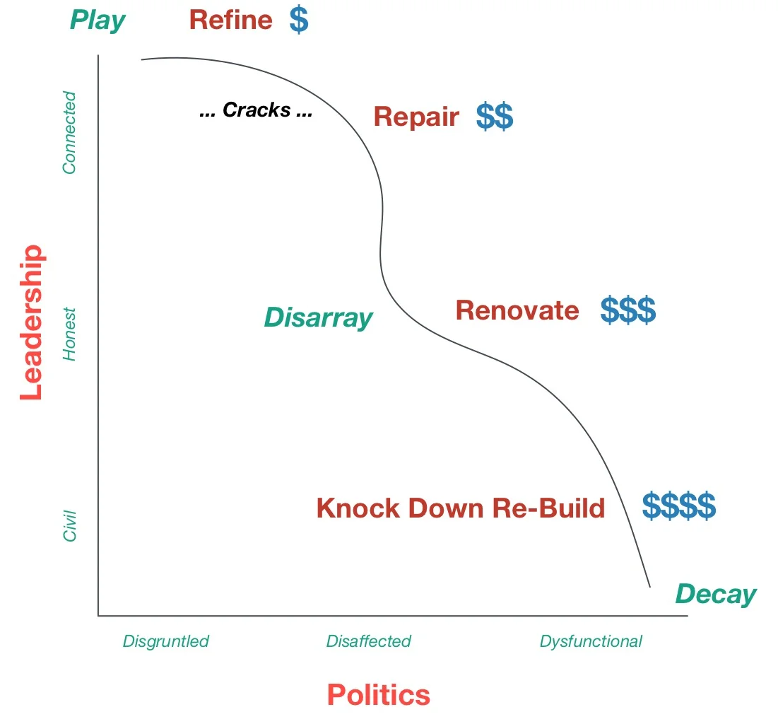 Leading a team is like maintaining a home: it needs regular attention to keep in good working order. If you ignore the cracks in the walls, the leaky faucet, the outdated electrics, you may need to do some serious repairs. Left too long, it gets outdated and you’re looking at a renovation. In the worst case scenario, a knock down and re-build.
