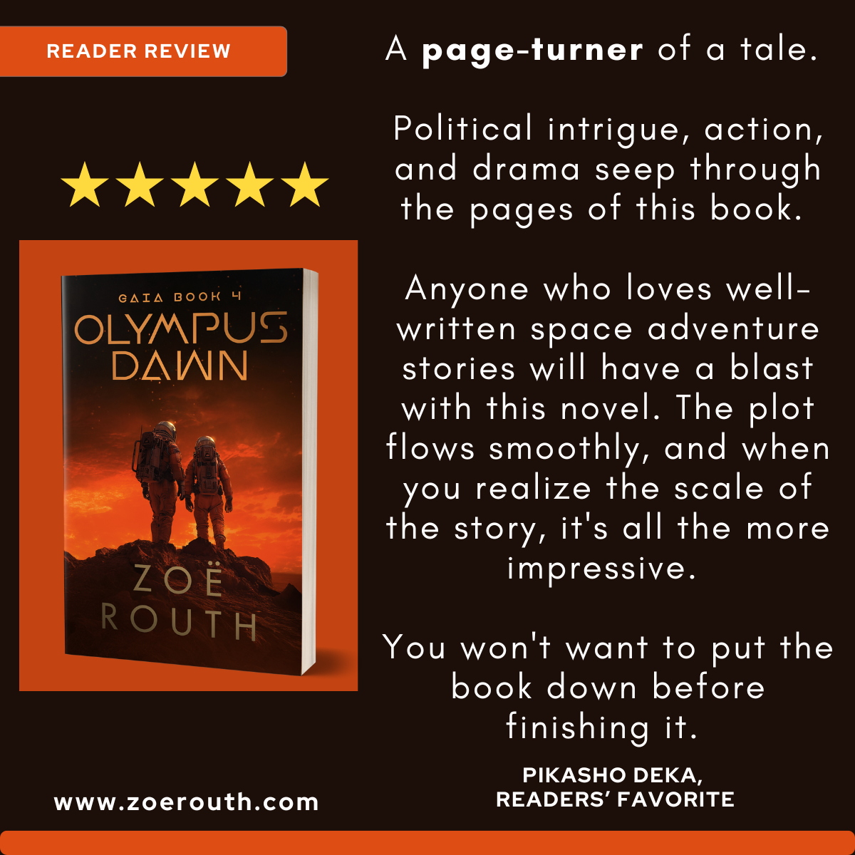 Explosive, fast-paced, and packed with twists, Olympus Dawn is a high-octane space thriller for fans of The Martian, The Expanse, and Mission: Impossible—set on the deadly frontier of our next home.
