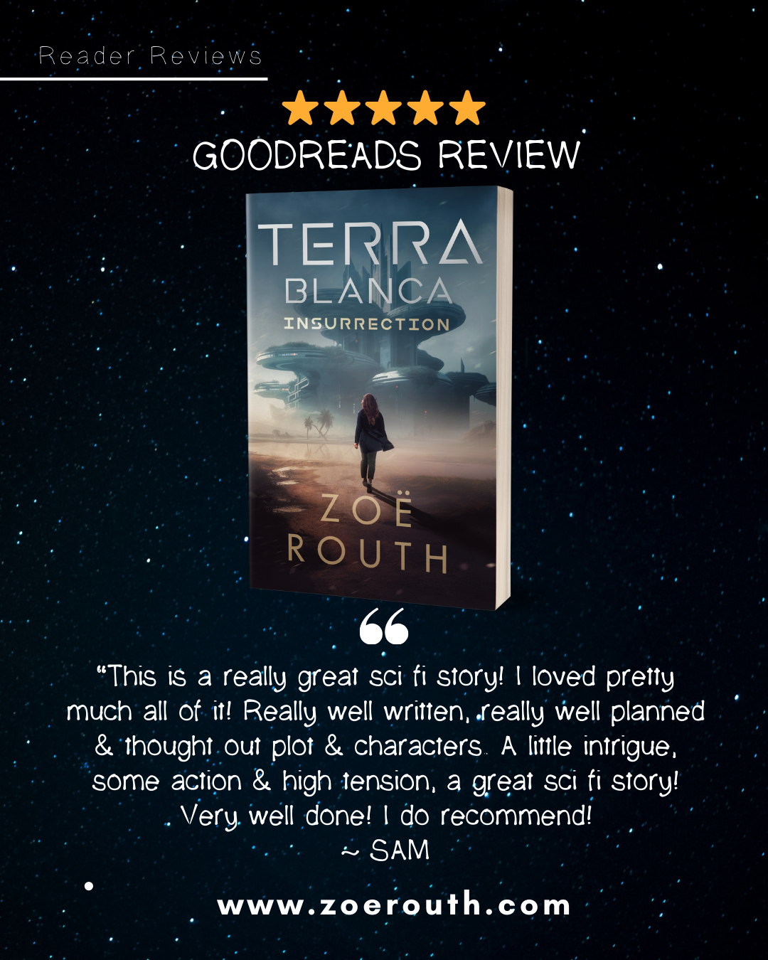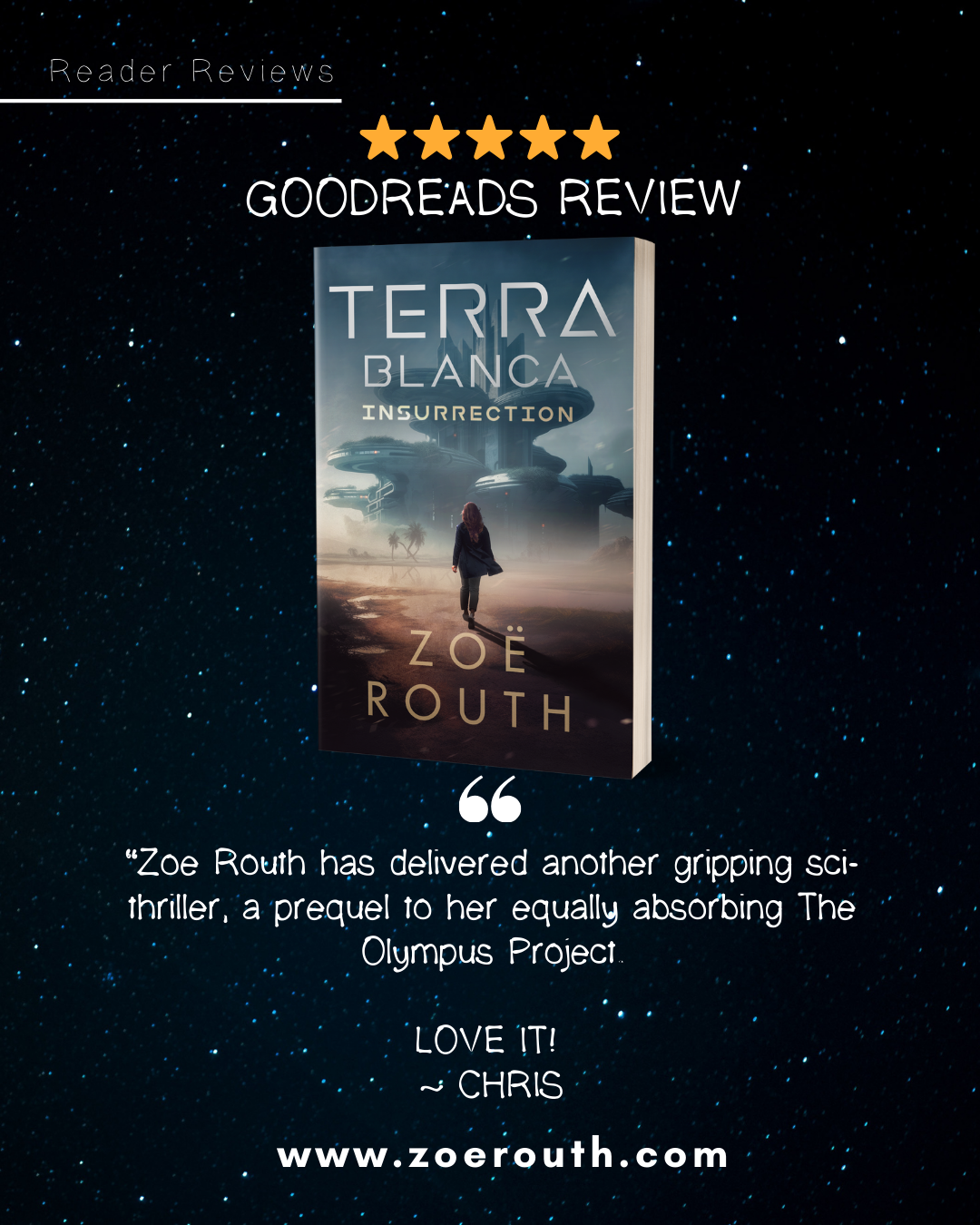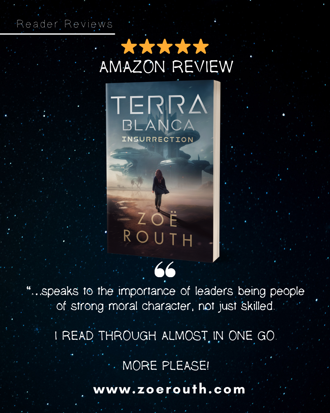 “It’s incredible how much thought- provoking content there is to consider that’s all layered into such an action-packed and engrossing tale. Overall, Terra Blanca: Insurrection is a gripping prequel that captivates with its suspenseful narrative and thought-provoking themes, and I would highly recommend it. ⭐⭐⭐⭐⭐ ”